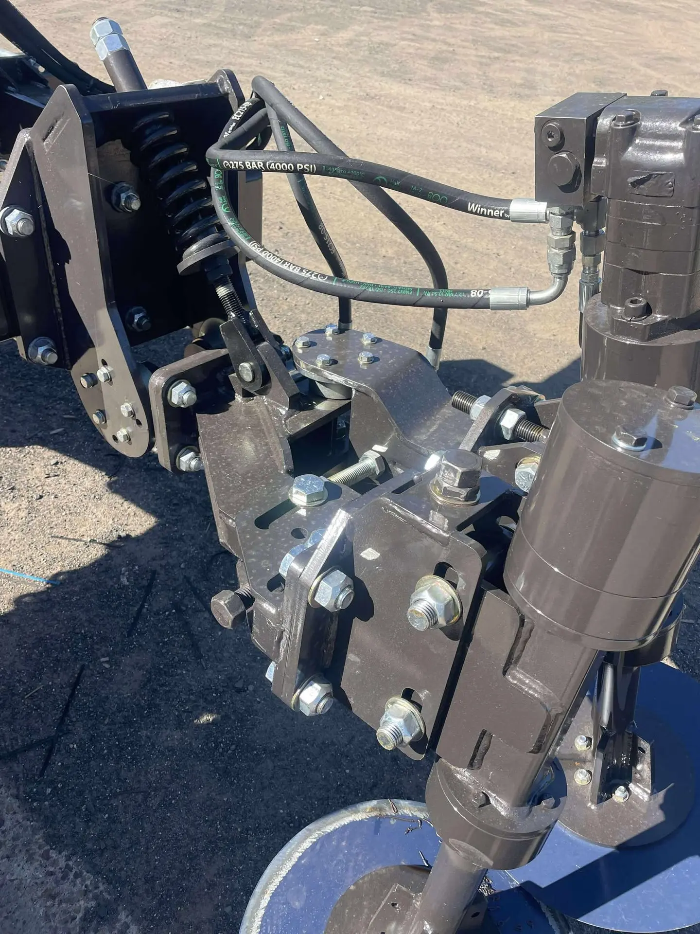 - Double-acting cylinders make clearing blockages a breeze. Allowing the operator to separate the discs from the cab to minimise stop time in the field.